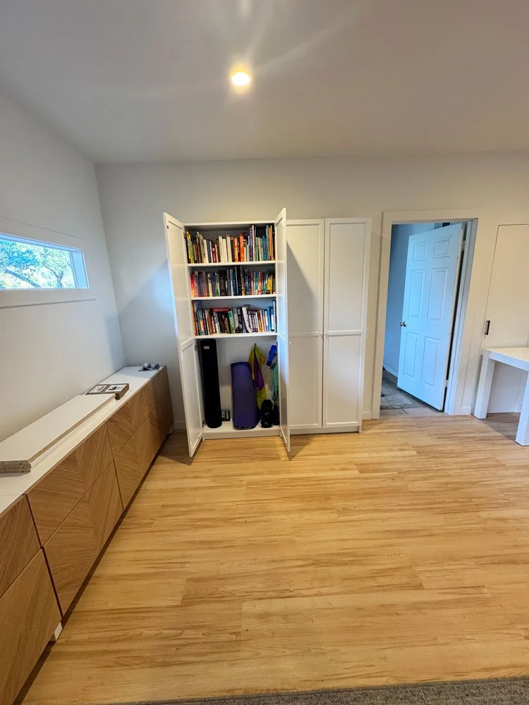 Wanted: A place for kids to hang out and have sleep-overs with friends. A TV room suitable for family bonding. A private, adult WFH “save our sanity” space, easily converted to afternoon tutoring sessions. A laundry area with an ironing board. Oh, and what to do with five surfboards, four bikes, four sets of skis and boots and four wetsuits, and boxes and boxes of books?