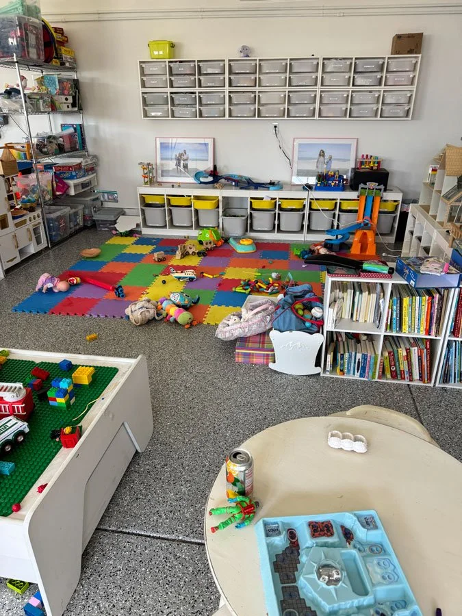 We'd built out a great custom-fitted Ikea playroom in the garage of house #1. We moved it to house #2, with a garage as large as a nursery school. Now dozens of friends and cousins all have room to play.